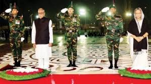 অমর একুশে ও আন্তর্জাতিক মাতৃভাষা দিবসের প্রথম প্রহরে রাষ্ট্রপতি মো. আবদুল হামিদ ও প্রধানমন্ত্রী শেখ হাসিনা জাতির পক্ষ থেকে কেন্দ্রীয় শহীদ মিনারে পুষ্পস্তবক অর্পণ করে মহান ভাষা আন্দোলনের বীর শহীদদের প্রতি গভীর শ্রদ্ধা নিবেদন করেছেন।