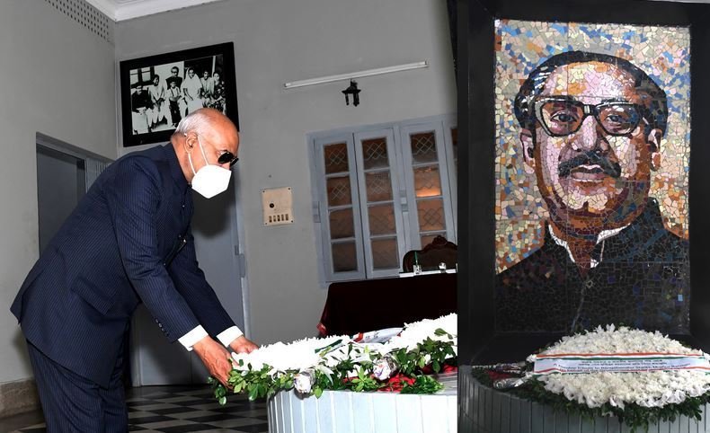 বঙ্গবন্ধুর প্রতিকৃতিতে ফুল দেয়ার পর শেখ রেহানা ভারতীয় রাষ্ট্রপতি রাম নাথ কোবিন্দকে সঙ্গে নিয়ে বঙ্গবন্ধু জাদুঘরে বিভিন্ন স্থান ঘুরে দেখান।