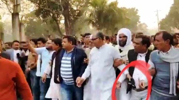ঐ মামলার আসামীদের গ্রেফতার দাবিতে গত শনিবার বিকেলে সাঁথিয়া উপজেলা আওয়ামী লীগ কার্যালয় থেকে বেড়া পৌর মেয়র ও নৌকার প্রার্থী শামসুল হক টুকুর ছেলে আসিফ শামস রঞ্জন, সাঁথিয়া উপজেলা আওয়ামী লীগ সভাপতি হাসান আলী, সাবেক প্রচার সম্পাদক শফিকুল ইসলাম শফিক, সাঁথিয়া পৌর মেয়র মাহবুবুল আলম বাচ্চুর নেতৃত্বে বিক্ষোভ মিছিল হয়। সে মিছিলে শফিকুল ইসলাম শফি কোমরে পিস্তল নিয়ে অংশ নেন।